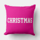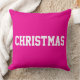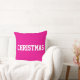 White CHRISTMAS Sporty Text On Bright Holiday Pink Cushion