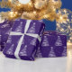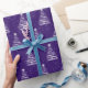 White star holiday tree in snowflakes with sparkling stars on purple background.