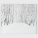 White Christmas Tale. Lonely and empty green bench at the end of the alley in the birch grove. Small bench, tall trees, nobody around. Silent snowfall. Christmas mood. Merry Christmas and Happy New Year!