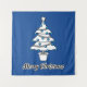 White Christmas Tree Blue Decorations - Merry Xmas Tapestry