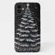 Black smartphone case featuring a stylised white Christmas tree and star accents on a snowy, glitter-like background. Modern, minimalist holiday design perfect as a seasonal gift or festive accessory.
