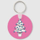 An illustration of an elegant chic white Christmas tree with plenty of blue hanging balls in pink background. This design is for people who loves Christmas, giving gifts and giveaways.