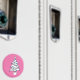 An illustration of an elegant chic white Christmas tree with plenty of blue hanging balls in pink background. This design is for people who loves Christmas, giving gifts and giveaways.