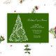 Invite guests to your holiday or Christmas time party with the festive White Christmas Tree on Green Holiday Open House Invitation. This elegant custom holiday open house invite features a swirly white Christmas tree design on a green background. Feel free to change the background colour to suit your event needs.