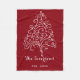 Personalise the snuggly White Christmas Tree on Red Fleece Blanket and create a keepsake gift idea for a newlywed couple celebrating their first holiday together. This soft and cosy custom xmas fleece blanket features an intricate white Christmas tree with a red background.