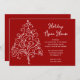 Invite guests to your holiday or Christmas time party with the festive White Christmas Tree on Red Holiday Open House Invitation. This elegant custom holiday open house invite features a swirly white Christmas tree design on a red background. The background colour of this card can be customised to suit your event needs.