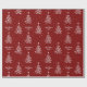 White Christmas Tree Pattern Custom Text Red Wrapping Paper