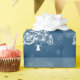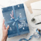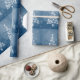 This is s roll of Christmas wrapping paper featuring a white Christmas tree on a blue background.
