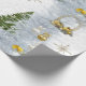 Sparkling Gold & silver tree decorations surrounded by sage-green festive foliage with freshly fallen snow in a winter wonderland.