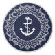 Elegant white circle frame ornate mandala with with nautical boat anchor over navy-blue changeable background colour.
