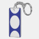 This bold geometric pattern features a white circle in the centre and two white half circles on the edges of a vibrant blue background.
