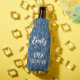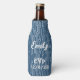 This bottle cooler has an art deco design that looks like likes on a circuit board. The lines are running vertically in white on a field of blue. Want a different colour? Message me.