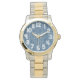 This women's watch has an art deco design that looks like likes on a circuit board. The lines are running vertically in white on a field of blue. Want a different colour? Message me.