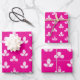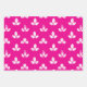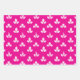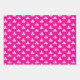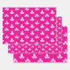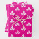 A pink and white wrapping paper sheet trio featuring a white stamped clover motif on a pink Fuchsia background.