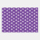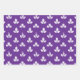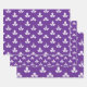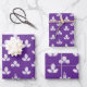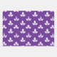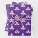 A purple and white wrapping paper sheet trio featuring a white stamped clover motif on a purple amethyst background.
