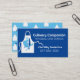 White bib apron and oven mitt with stitching plus cooking utensils business cards for personal chefs, cooking classes or culinary instruction or other food or cooking businesses. Utensils are slotted spoon, spatula and ladle, green background and chequerboard card back.