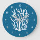 White coral on blue aquatic life large clock