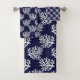 White corals on a navy blue background bath towel set