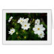 A photograph of white cosmos flowers, looking like a little cosmos of stars in amongst the leaves. The card has been left blank inside but can be further customised.