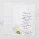 Plain white invitation with envelope and cosmos flower on white painted wood for a 50th wedding anniversary party.