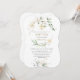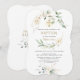 White Cream Floral Greenery Gold Cross Baptism Invitation