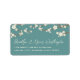 An original illustration of beautiful cream ivory white cherry blossoms or sakura spring flowers with light brown branches on a turquoise teal green background. This is a modern wedding return address label / mailing label.
