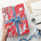 Wrapping paper featuring delicate hand drawn botanical pattern, beautiful spring flowers - white crocuses on scarlet red background. © Julia Khoroshikh www.juliakhoroshikh.art #florals #crocuses #crocus #snowdrops #springflowers #floralpattern #botanical #wrappingpaper #DIYsupplies #giftwrapping #zazzlemade