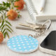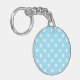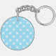 White cross stitches on baby blue key ring
