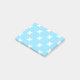 White cross stitches on baby blue post-it notes