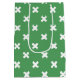 White cross stitches on green
