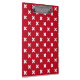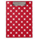 White cross stitches on red clipboard