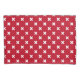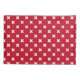 White cross stitches on red