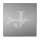 White Cursive & Grey Monogram | Editable Colours Ceramic Tile