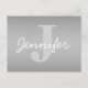 White Cursive & Grey Monogram | Editable Colours Postcard