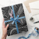Stylish Wrapping Paper featuring white curve lines pattern on black background.