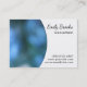 This clean, modern design features a bold white curve overlaying a background image. You may choose to use this image, which is a photo of a dappled, blue green shot taken of trees in spring - intentionally blurred - with light filtering through. You may, instead, customise the design and add your photo of choice. All details including your name, position, contact information are set in black over the white space. The photo is fully repeated on the back. The template was created with versatility in mind; change fonts, colours, position as you like.