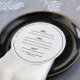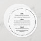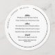 Round wedding menu in white with modern and trendy black fonts, and your names and wedding date in a curved text along the edge of the round wedding menu.