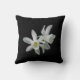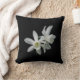 This elegant decorative throw pillow features two lovely pure white daffodils on a black background. The image is repeated on the back.