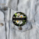 Custom button features a monogram, an elegant boho style, floral design with beautiful white daisies watercolor flowers and greenery. Palette of white and yellow, green shades. Personalise with a first name.