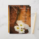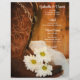 Customise the charming White Daisies and Cowboy Boots Country Wedding Menu with the details of the meal that you will serve at your informal yet elegant ranch style wedding brunch, bridal shower or marriage ceremony by adding the salad or first course, entree or second course and dessert or third course. Personalise it with the names of the bride and groom, reception location and marriage ceremony date. This custom ranch theme wedding menu features a digitally enhanced floral photograph of a pair of brown leather western cowboy boots, white daisy flower blossoms and a white bridal veil with a weathered barn wood background.