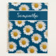 White Daisies on Blue with Custom Name Planner
