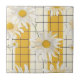 White Daisies on Yellow Striped Grid Background Ceramic Tile