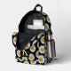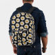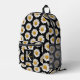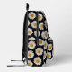 A pattern of pretty white and yellow daisies on black background with a monogram and a custom name in decorative script.