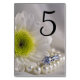These elegant White Daisy and Diamond Ring Wedding Table Numbers will add a touch of class to the tables at your marriage reception, garden party bridal shower or engagement party. These pretty custom flowery table number cards feature a floral photograph of a white daisy flower blossom, round diamond engagement ring and white pearl necklace.