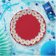 White summer daisy border on red background.