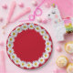 White Daisy Border On Red Paper Plate