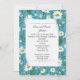 White curled paper on a summer white daisy pattern with aqua background for a wedding vow renewal invitation.