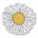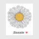 Sticker featuring a cartoon illustration of a pretty little white daisy. Hand drawn style.