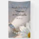 Personalise the pretty White Daisy Elegance Wedding Banner to welcome and direct your guests to your marriage ceremony and reception. This elegant custom flowery nuptial banner sign features a floral photograph of a white daisy flower blossom, pearl necklace and diamond engagement ring and wedding band set with a grey background and the words Happily Ever After.