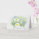 Close up of white daisies in a country meadow with watercolor frame for thinking of you.